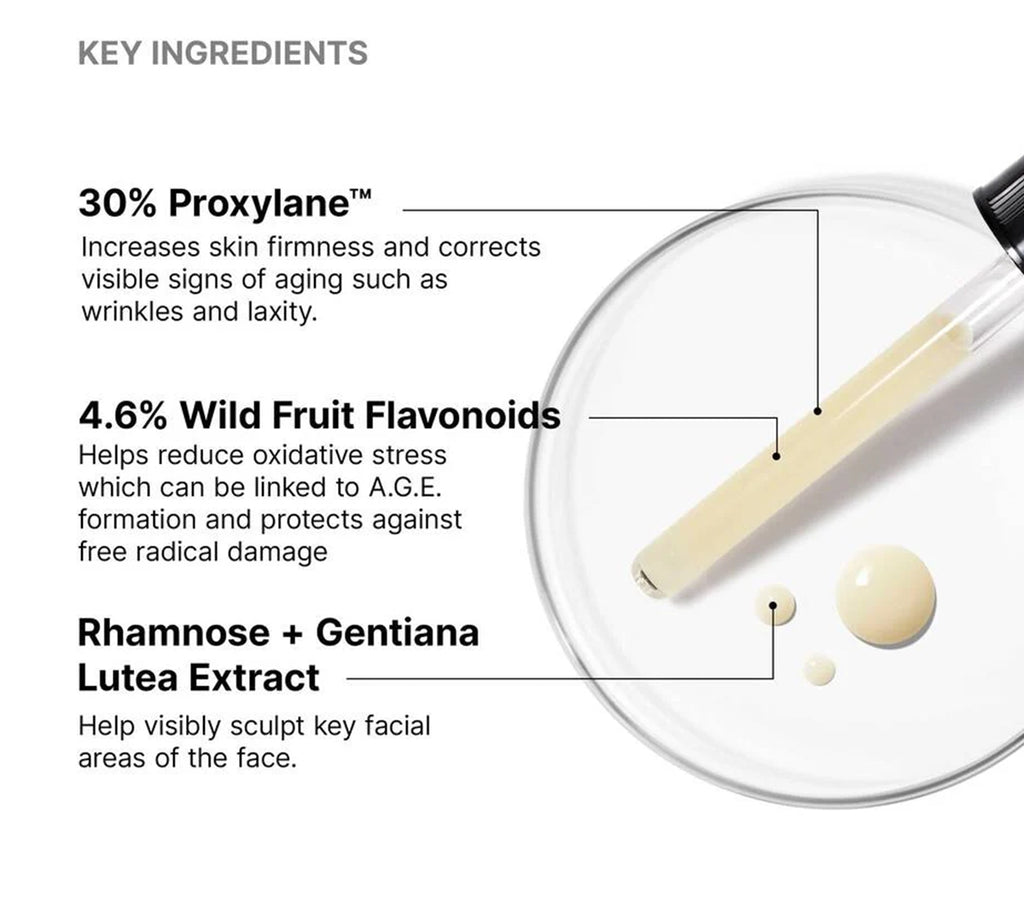 - Glycation defence: high concentration of Flavo-Proxylane (≈ 34.6%) + wild fruit flavonoids help mitigate the effects of glycation on collagen and elastin.